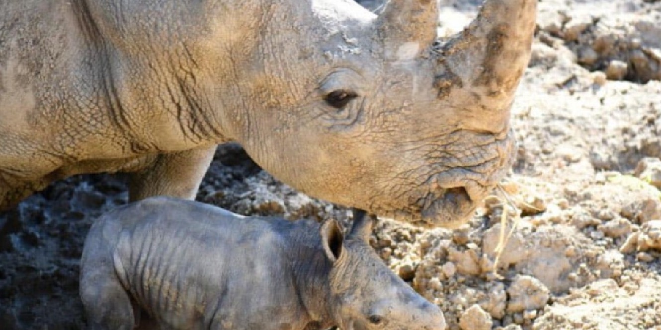 Este é o primeiro nascimento viável de um rinoceronte branco no Jardim Zoológico de Montpellier.